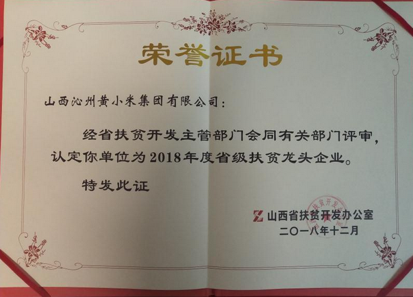 我司被評為“山西省扶貧龍頭企業”