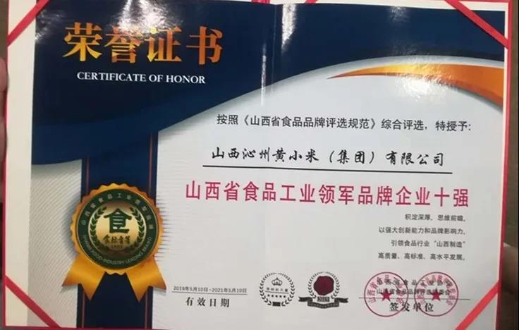 山西沁州黃小米集團(tuán)被評(píng)為山西省食品工業(yè)領(lǐng)軍品牌企業(yè)十強(qiáng)