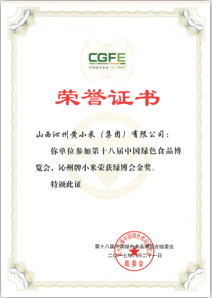 “沁州”牌沁州黃小米在第十八屆中國綠色食品博覽會榮獲金獎